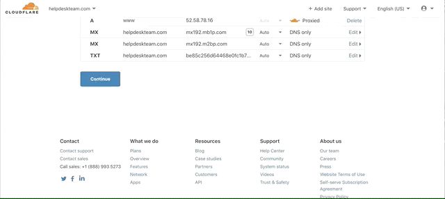 Note: Please ensure the Proxy status is set to DNS only as we do not support Cloudflare Proxy when adding domains to Settings > Domains.